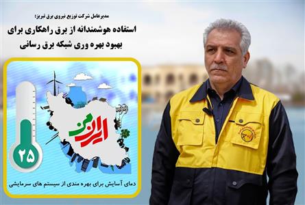 مدیرعامل شرکت توزیع نیروی برق تبریز کفت: استفاده هوشمندانه از برق، راهکاری اساسی برای بهبود بهره وری شبکه برق رسانی است.